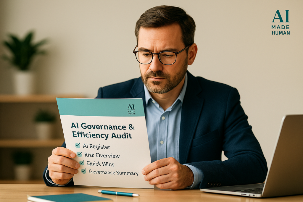 A light 1-2 week AI Governance & Efficiency Audit that maps real use of AI, reduces risk and frees staff time without a big programme.